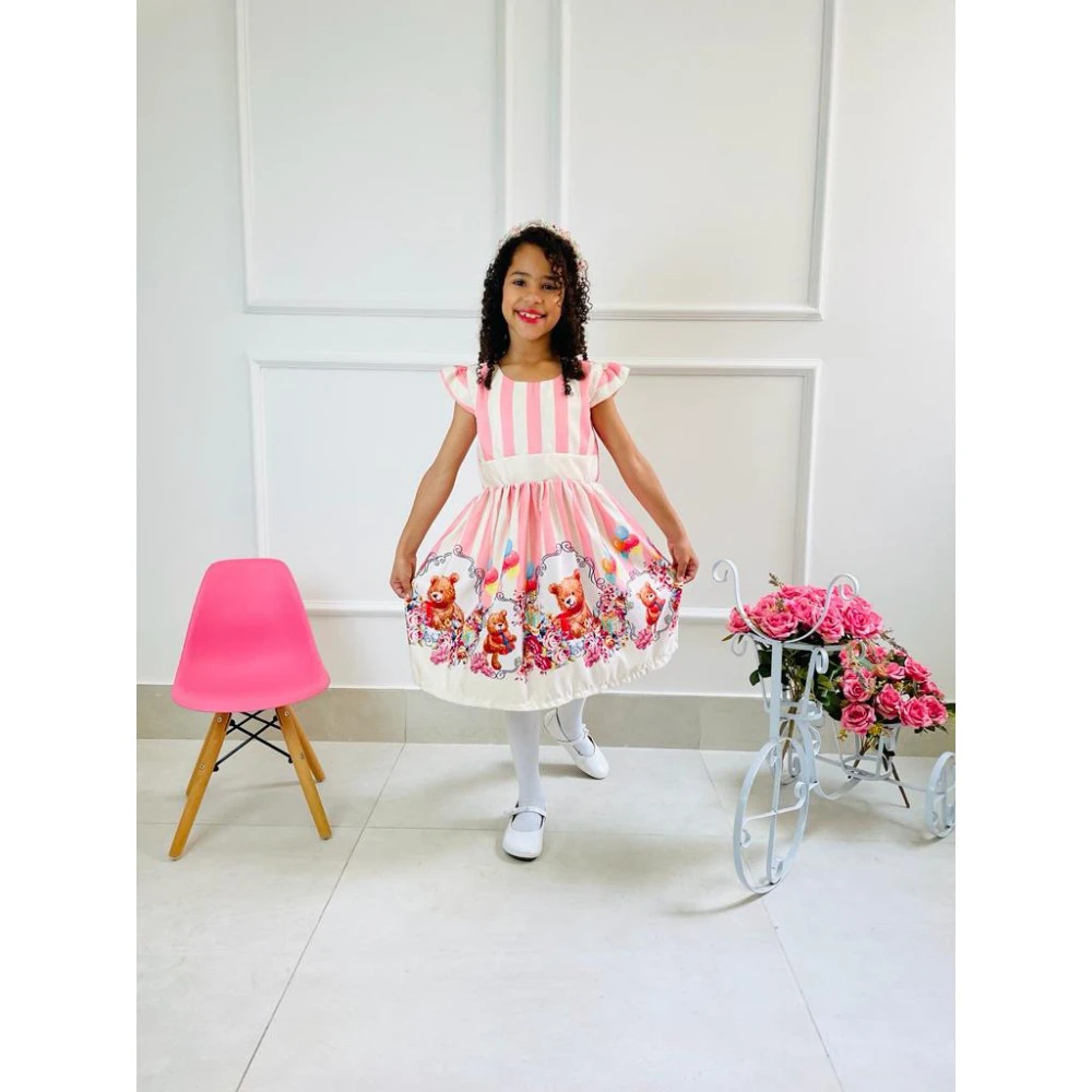 Vestido Infantil Menina Estampa Ursinho casual festa rodado